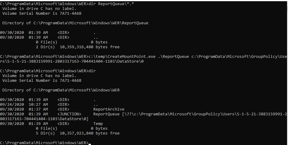 In this case we are going to redirect the “C:\ProgramData\Microsoft\Windows\WER\ReportQueue” folder to the “Datastore\0” directory. This folder is normally empty if no error reporting process is running.