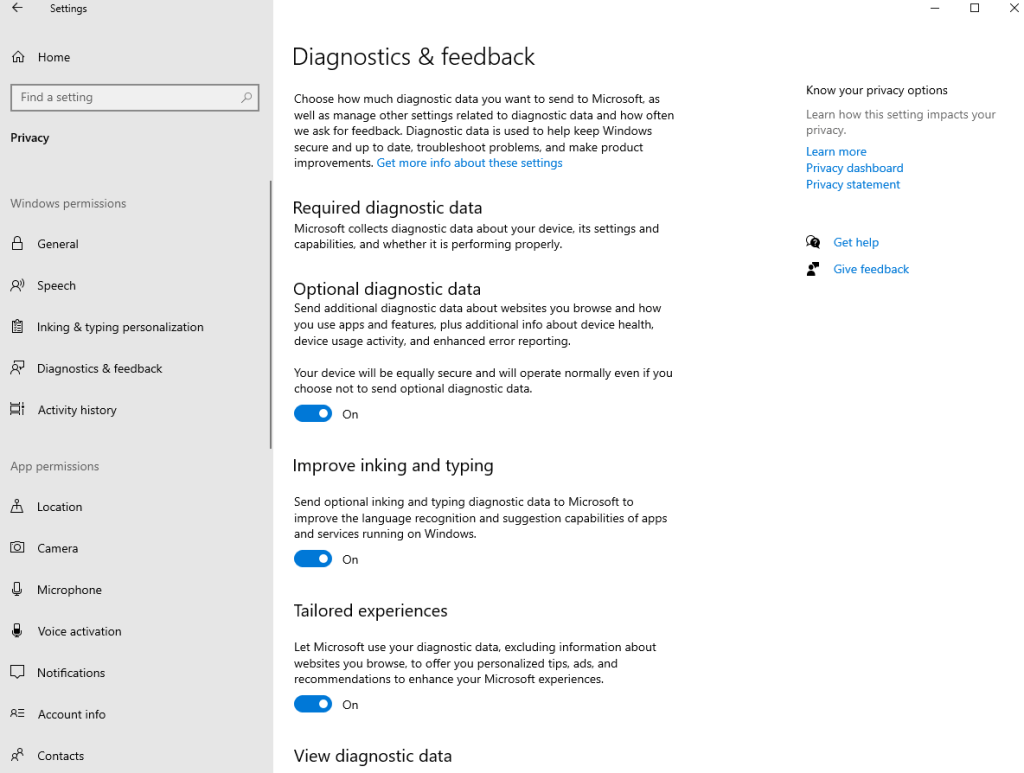 - Ensure that optional diagnostics data etc.. has been turned on in Settings->Privacy->Diagnostics&feedback