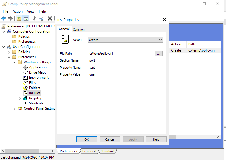 - On the Domain Controller create a Domain preferences policy (for example “Ini Files”)