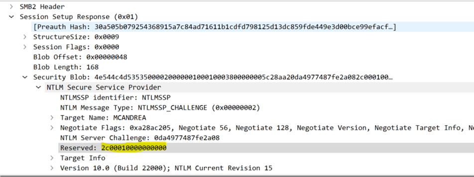 In NTLM Local Authentication, the “Reserved Field” in the NTLM 2 message is not empty, but will reference the LSASS “Context” handle that the client should associate with