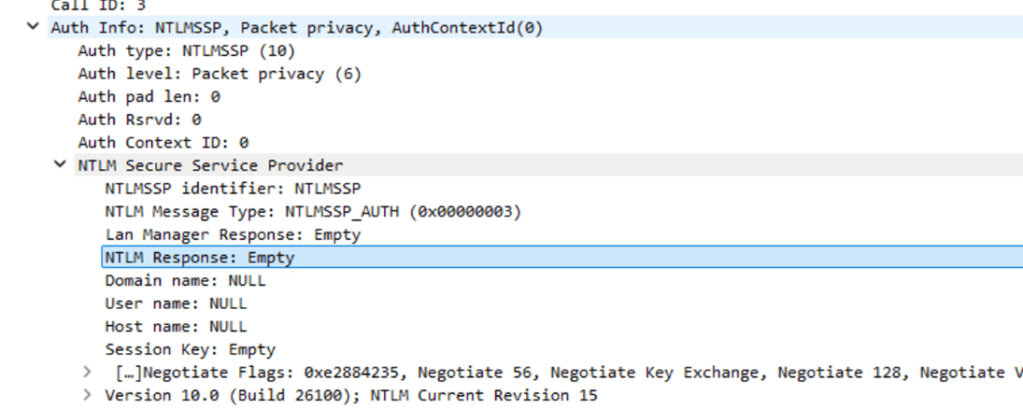 As mentioned, in NTLM local authentication, the NTLM3 message is completely empty, which means that the NTLMv2 validations MIC, MsAVFlags, NtProofStr were probably skipped…