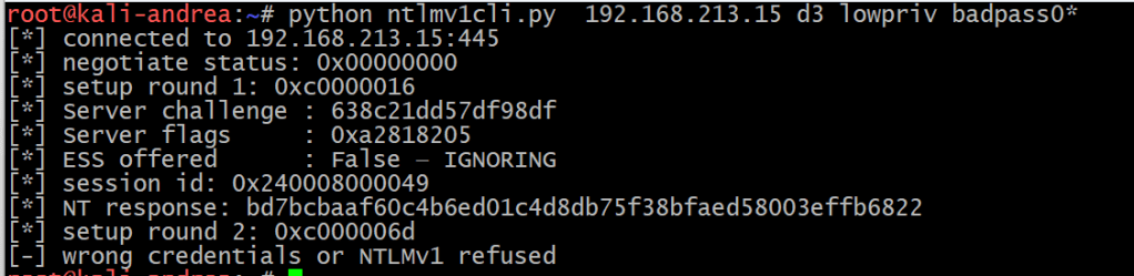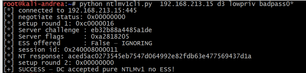 For my tests, I used a Python script to send raw NTLMv1 authentication packets, ensuring that this specific protocol was explicitly use